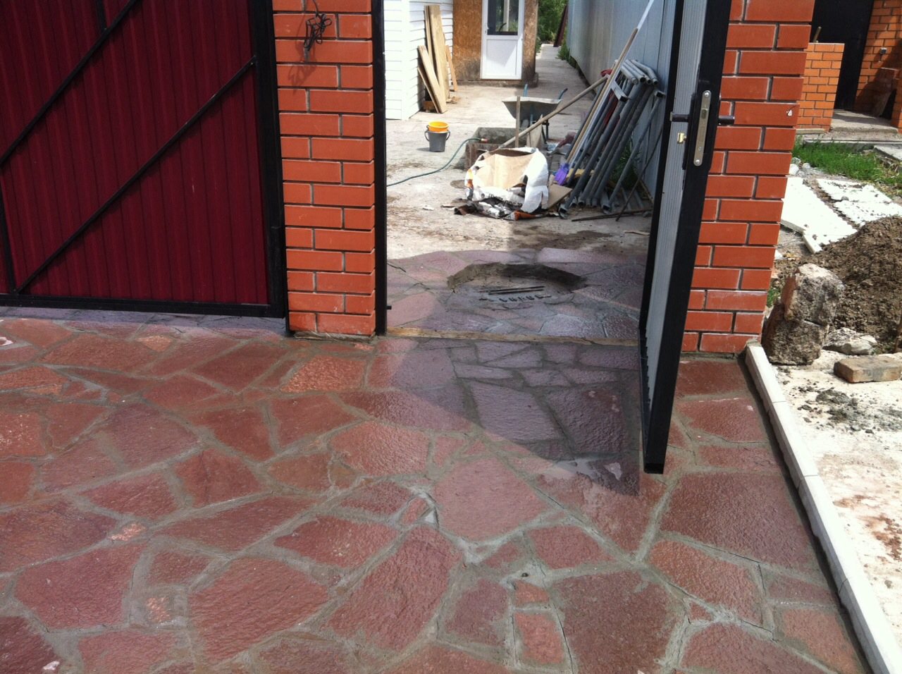 Применяемый нашими строителями отделочный камень не только крепко и красиво выглядит, но и действительно несет собой полезную функциональную нагрузку в виде дорожек по которым можно перемещаться, как пешком так и на машине.